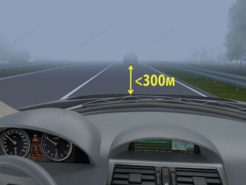 Согласно Правилам дорожного движения Российской Федерации "Недостаточная видимость" - видимость дороги менее 300 м в условиях тумана, дождя, снегопада и тому подобного, а также в сумерки.