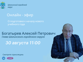 В ходе прямой линии с применением ПОС (платформа обратной связи) глава Шалинского городского округа Богатырев Алексей Петрович ответит на вопросы жителей, касаемых подготовки к началу нового учебного года в Шалинском городском округе.