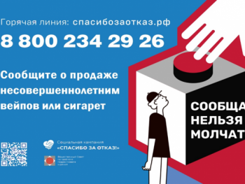 Горячая линия создана в регионе в рамках социальной кампании по борьбе с продажей табачной и никотинсодержащей продукции несовершеннолетним "СПАСИБО ЗА ОТКАЗ!".