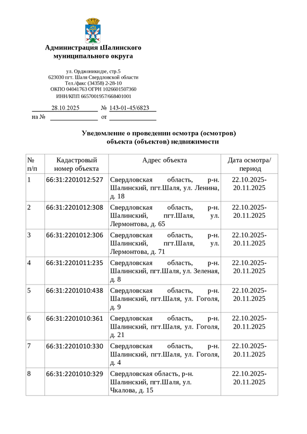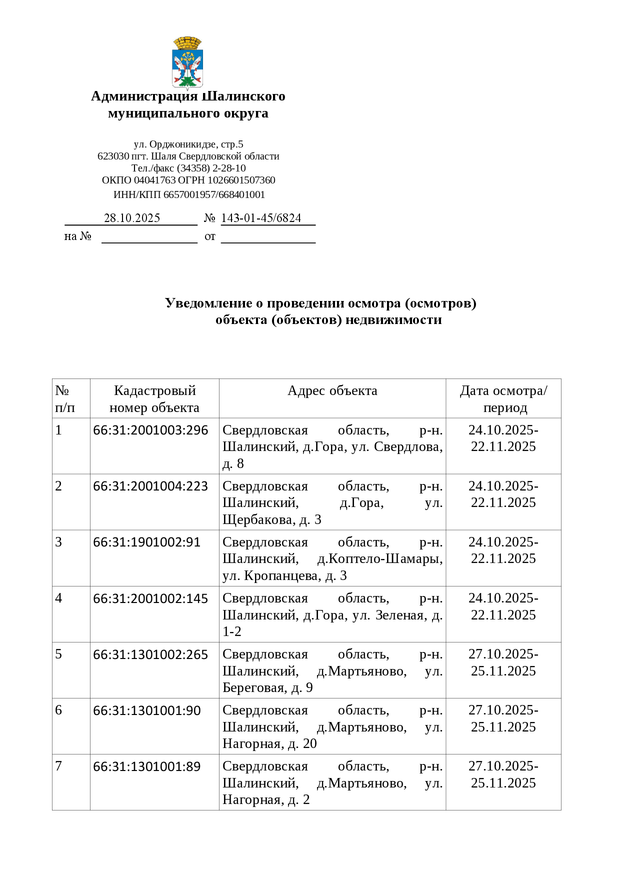 Уведомление о проведении осмотра (осмотров) объекта (объектов) недвижимости