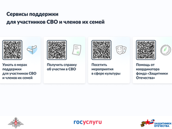 Воспользуйтесь доступными сервисами на госуслугах уже сейчас. Через госуслуги вы можете узнать о мерах поддержки, получить справку об участии на СВО, посетить мероприятия в сфере культуры, а также получить помощь от координатора фонда «Защитники отечества».