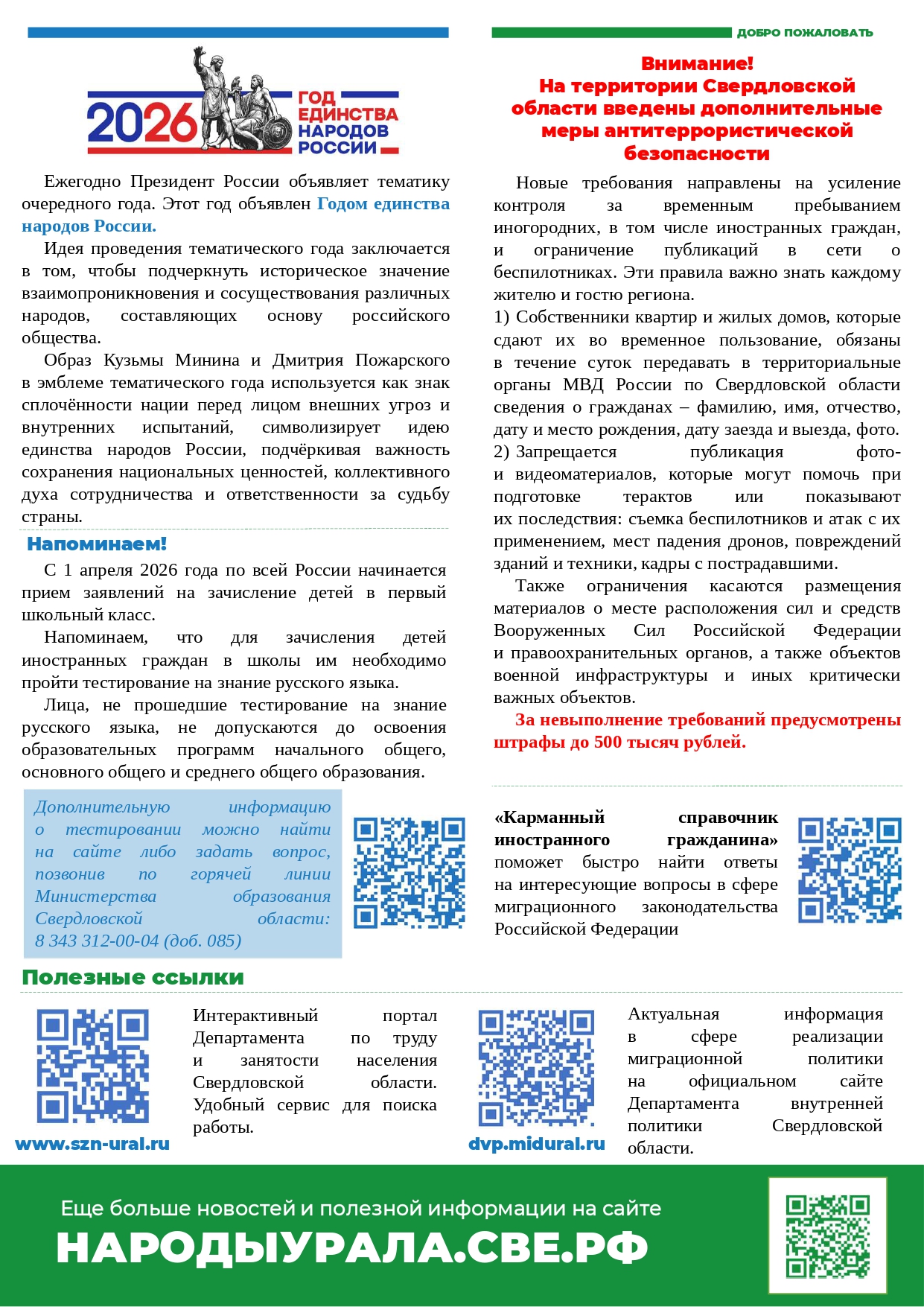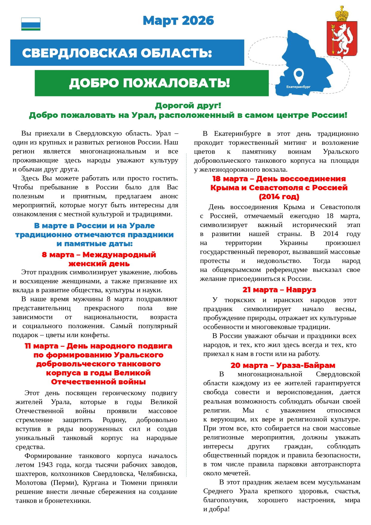 Информационный бюллетень для иностранных граждан, содержащий сведения о государственных праздниках, памятных датах и полезную информацию.