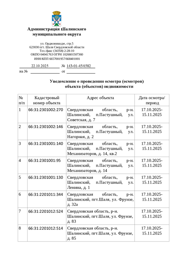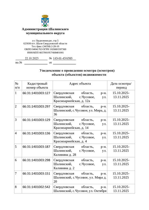 Администрация Шалинского МО