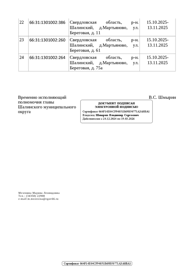 Администрации Шалинского муниципального округа