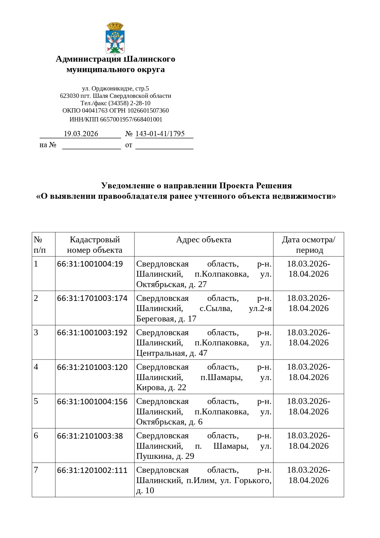 Администрация Шалинского МО